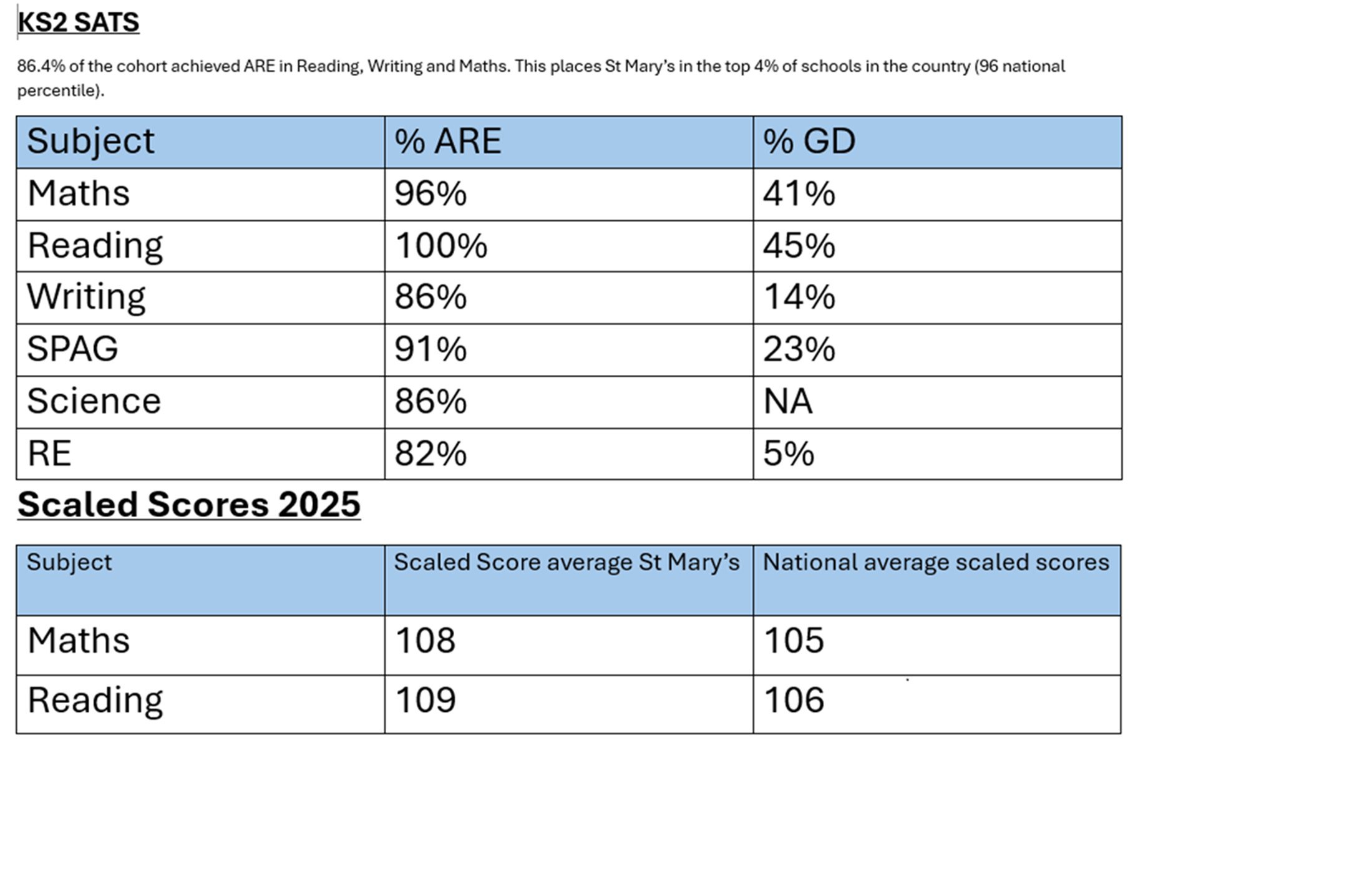 St Mary’s has consistently outperformed local and national performance averages for the past 4 academic years. On average St Mary’s has achieved combined outcomes which are at least 20% higher than other schools locally and nationally (on average).